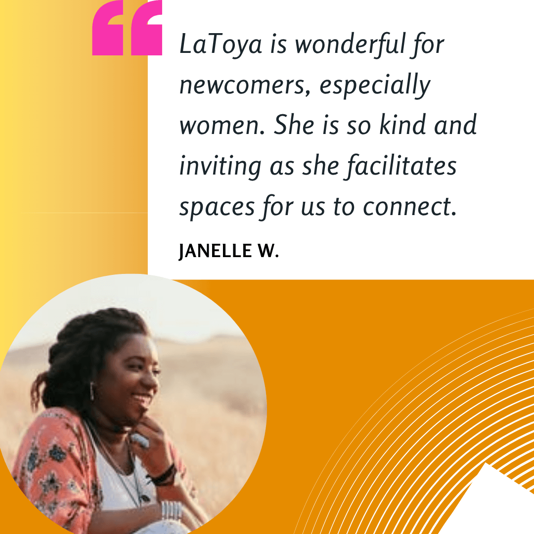 “LaToya's calm presence, quiet confidence, and deep generosity make you feel seen and supported. I was impressed by how she connects, encourages, and serves. She leads with no agenda—just purpose.”